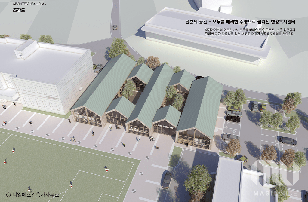 심사위원단은 당선안에 대해 “내·외부 완충 공간과 전이 공간을 효과적으로 활용해 유니크한 행정복지센터로 구현됐다”며 “외부 이용자를 고려한 공용화장실 계획은 공공적 측면에서 우수하다”고 평가했다.